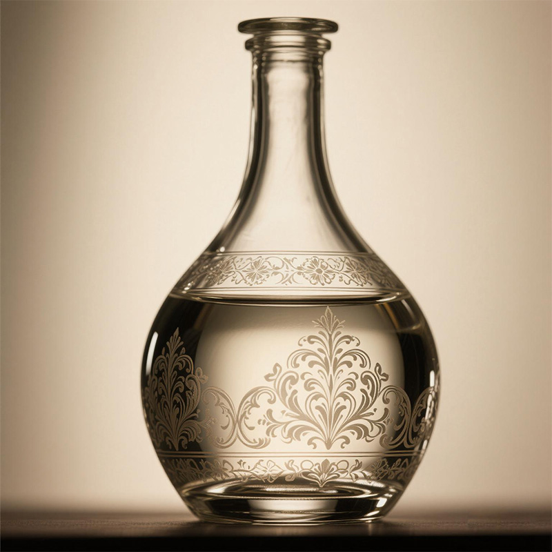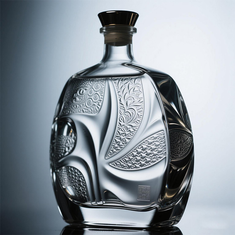 Ingenious carving of beautiful patterns, engraving art on transparent glass. High-end customized whiskey and vodka bottles, with luxurious texture and exquisite craftsmanship, give the spirits the ultimate style and collection value.