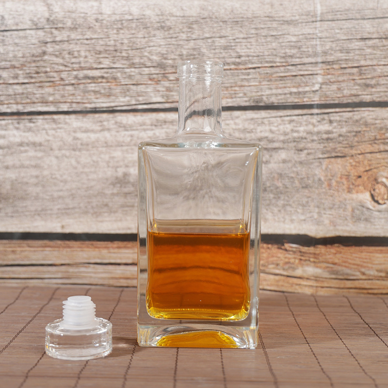 Thickened transparent glass, square design shows style. Sealed and moisture-proof, suitable for foreign wines such as whiskey. Customization is supported, and the 500ml capacity meets the needs of wine storage and display.
